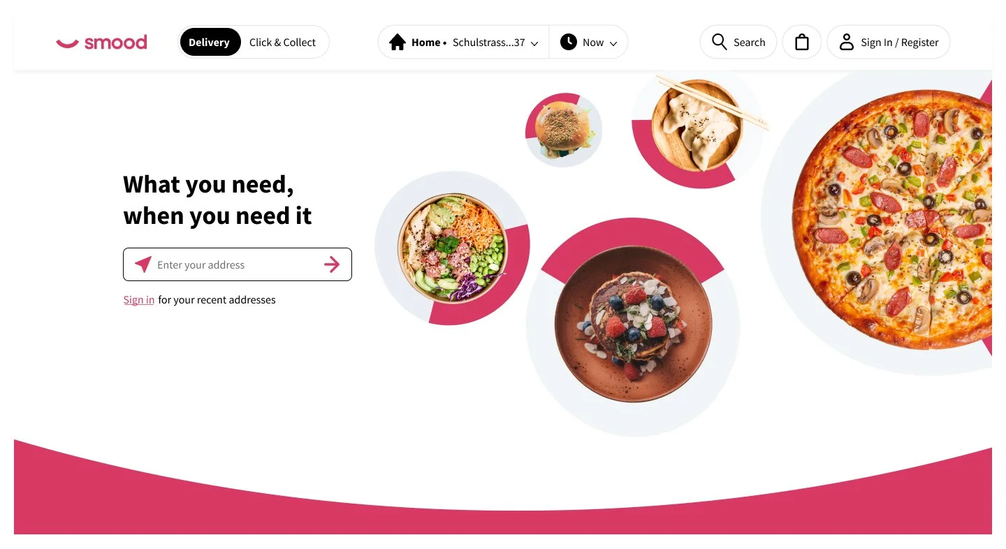 Smood, a home delivery company, was in the process of overhauling its identity, so I was asked to follow the wireframes and create the new home and restaurant pages for the website, as well as adapting them for mobile use.